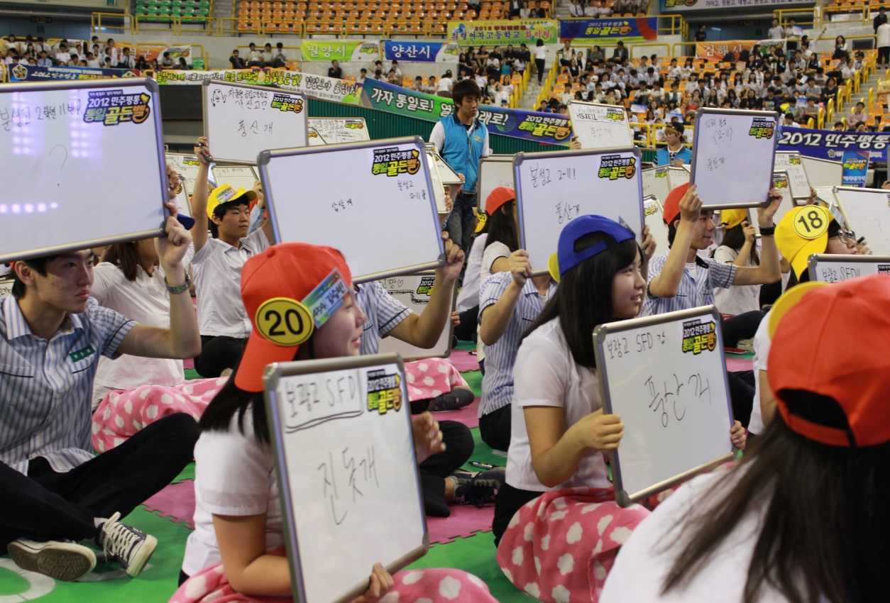 °æ³²Áö¿ª ½Ã±º±¸ ÇùÀÇȸ ¿¹¼±´ëȸ¸¦ °ÅÃÄ ¼±¹ßµÈ 838¸íÀÇ ÇлýµéÀÌ Âü°¡ÇÑ ¡¶2012 ¹ÎÁÖÆòÅë ÅëÀϰñµçº§ °æ³²Áö¿ªÈ¸ÀÇ´ëȸ¡·¿¡¼­ Âü°¡ ÇлýµéÀÌ ¸¹Àº °Í¿¡ ³î¶ó°í, ÇлýµéÀÇ ÇнÀ·®¿¡ ¶ÇÇѹø ³î¶ú½À´Ï´Ù.